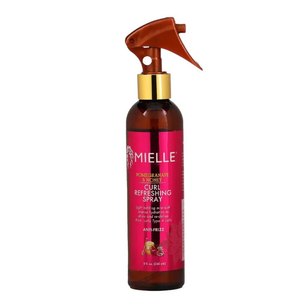 بخاخ الرمان والعسل المنعش يحتوي على الماء والزيوت العطرية لإعادة ترطيب وتدريب تجاعيد الشعر.